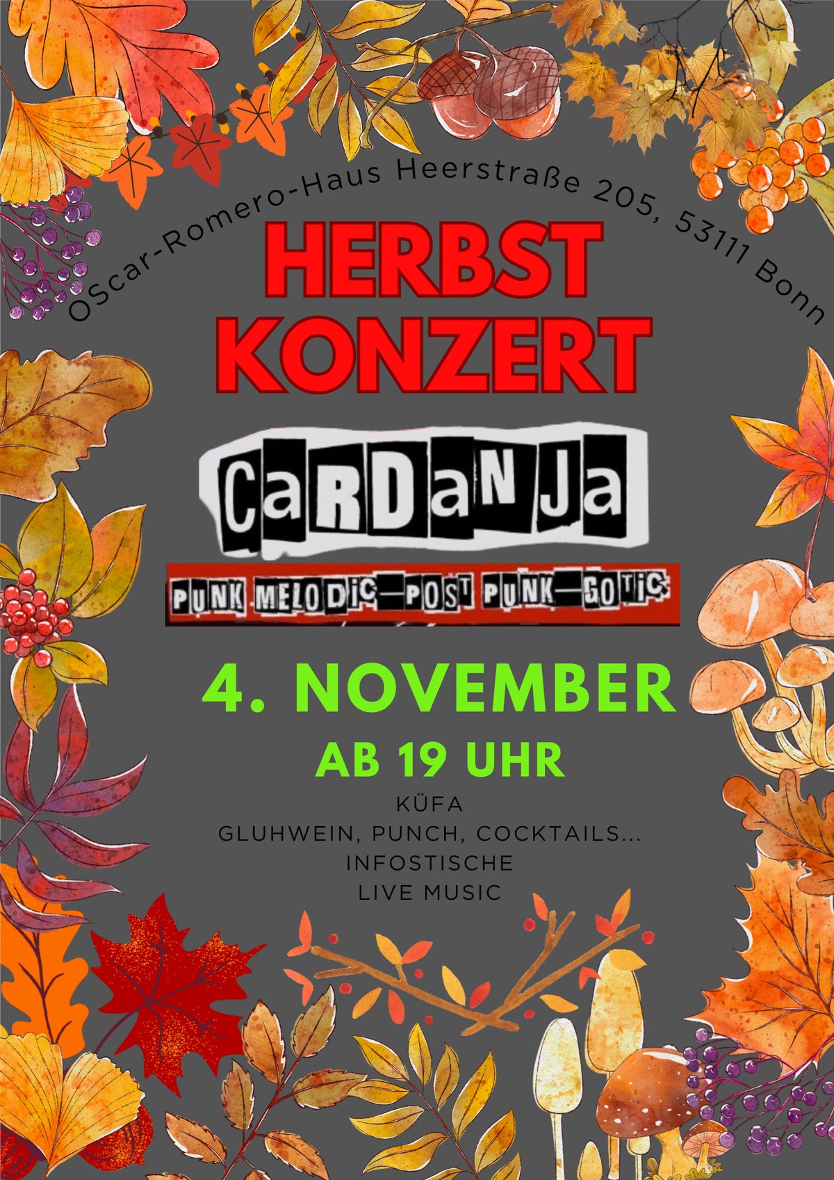„Cardanja ist eine kleine Band aus Weimar, bestehend aus zwei Personen. Anja aus Weimar spielt Akkordeon und Melodica, und Dan spielt elektrische und elektroakustische Gitarre, Gesang und Drumcomputer. Er singt schnelle melodische Punkmusik mit politischen Texten über Ungerechtigkeit von gestern und heute, mit einer antikapitalistischen Botschaft, gegen Faschismus, Rassismus und Chauvinismus, über vom System ausgegrenzte Menschen, gegen diktatorische Regime jeglicher Art, Homophobie und Chauvinismus. Dan wurde in Timisoara, Rumänien geboren und hörte 1978 zum ersten Mal Punk von älteren Freunden. Er spielte in mehreren Punkbands, darunter Terror Art und Critica Radicala aus Craiova. Als eine Reihe von Bands verschwanden, weigerten sich Anja und Dan, Punk aufzugeben und weiter gegen Ungerechtigkeit jeglicher Art zu singen. Wir sind nicht mehr jung, aber wir wollen nicht resigniert auf unseren Tod warten, wie es sich einige von uns wünschen. Wir wollen mehr Konzerte. Punks sterben nicht für immer, Punk. Cardanja existiert seit 2005. Anja liebt Dan und ist solidarisch mit der Punkmusik und der Szene. Kämpfe für Gerechtigkeit, wenn du nichts mehr zu verlieren hast. Es ist nicht wichtig, wie viele Leute in einer Punkband spielen. Wichtig ist, dass Sie Ihren Kollegen etwas zu sagen haben. Punk kann man im Duo oder auch alleine spielen. Wir lieben unser Publikum.“