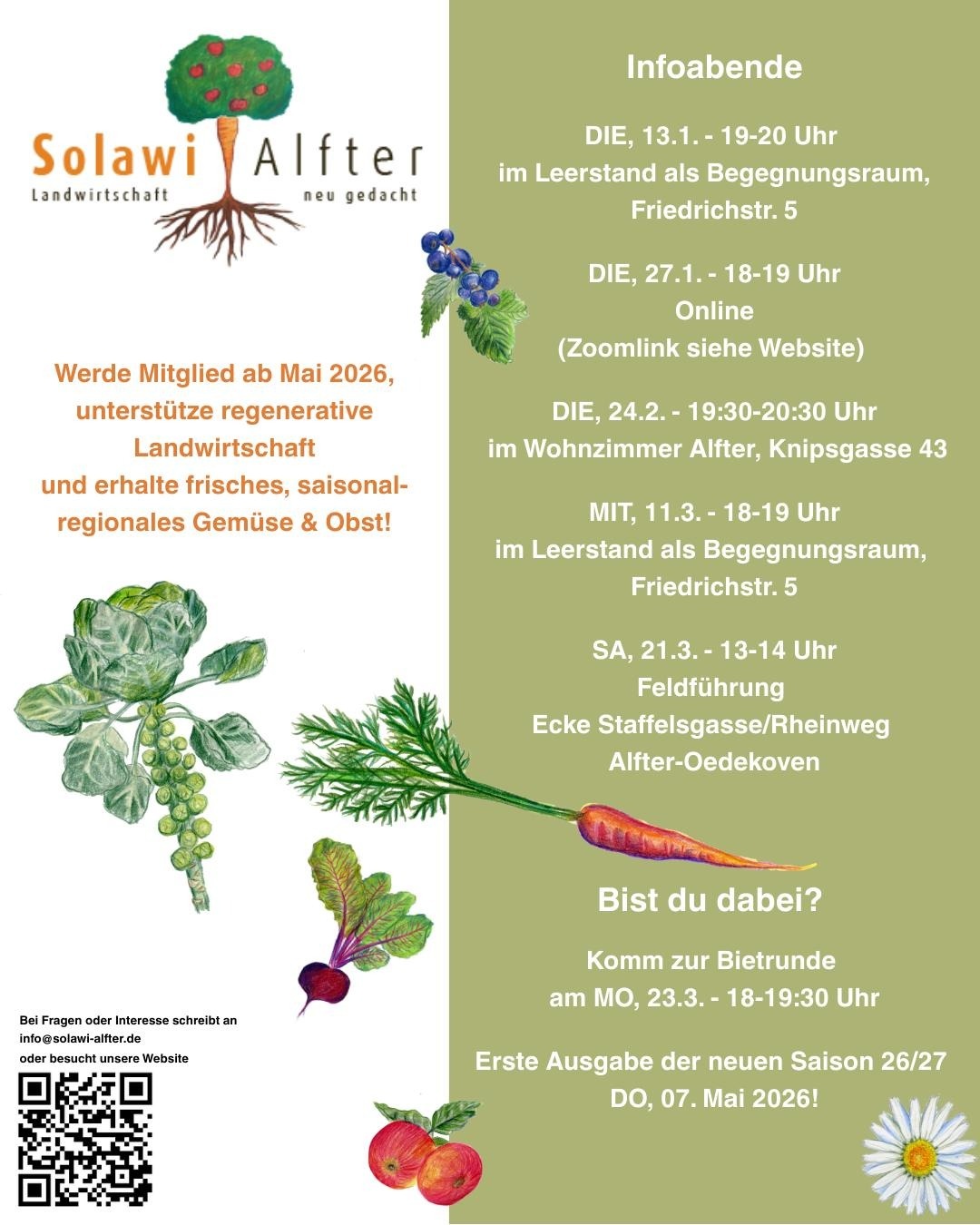 Werde Mitglied ab Mai 2026, unterstütze regenerative Landwirtschaft und erhalte frisches, saisonal- regionales Gemüse & Obst.