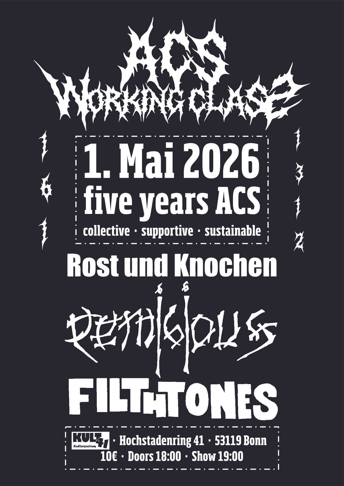 5 Jahre ACS – Soliparty für euren kollektiven Lieblingscopyshop. Bands, Drinks und Merch vom Allerfeinsten.
