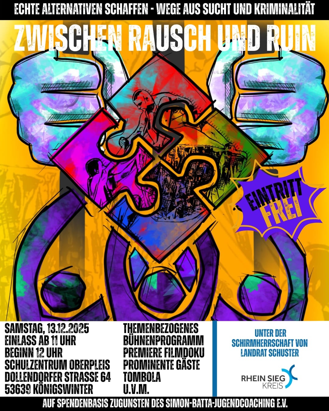 „Zwischen Rausch und Ruin“ ist eine eindringliche, gesellschaftlich relevante Veranstaltung, die Menschen dort abholt, wo sie wirklich kämpfen. In Familien, auf der Straße, in Jugendgruppen, in Schulen und in der eigenen Biografie.